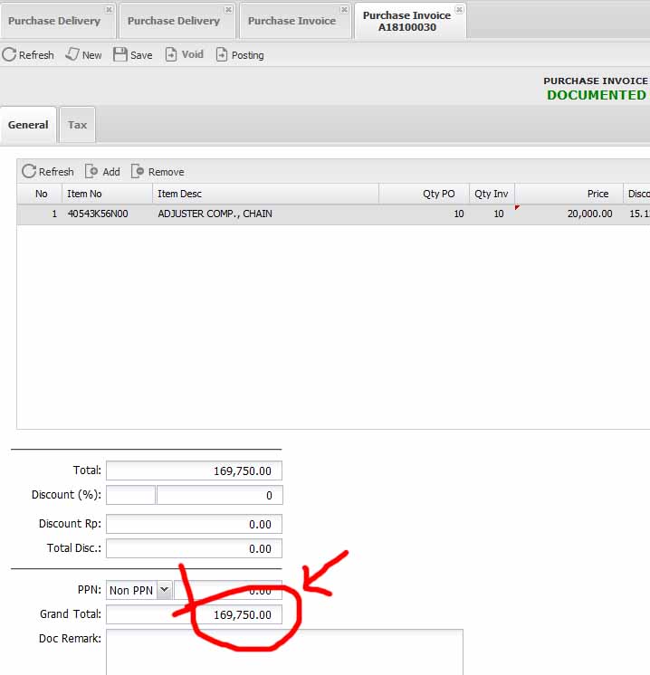 - kolom PPN sudah diisi default sesuai dengan supplier yang dipilih pada saat Purchase Order