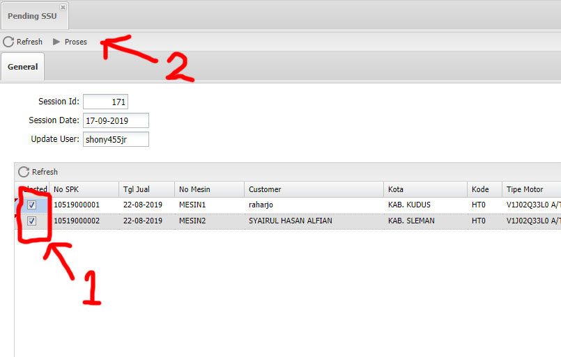 Modul ini dipakai untuk menandai penjualan sudah diajukan fakturnya ke main dealer atau belum