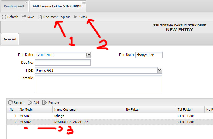 Lanjutkan tekan tombol "Save" untuk menyinpan header transaksi, kemudian document request dan posting (1)