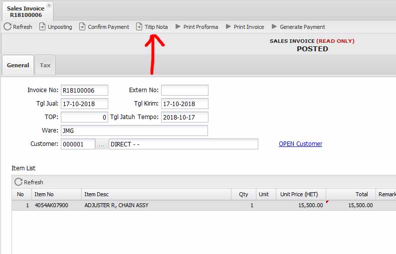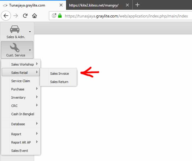 Modul Sales Invoice dapat di buka dari menu Cust. Service > Sales Retail > Sales Invoice