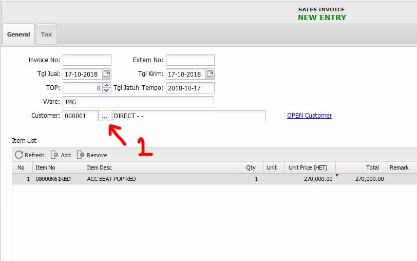 - Pilih Customer (1) kemudian dobel klik di (2) untuk memilih notanya (3)
