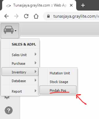 Modul Mutasi Pos / Outlet dapat di buka dari menu Sales Adm > Inventory > Pindah Pos