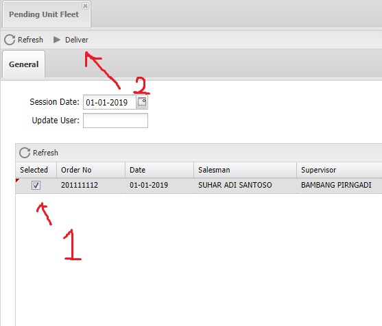 Jendela Unit Fleet Delivery akan terbuka dan lanjutkan proses sebagai berikut