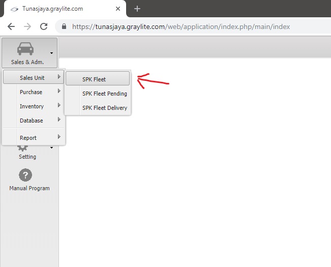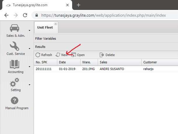Mulai buka menu Sales & Adm. > Sales Unit > SPK Fleet